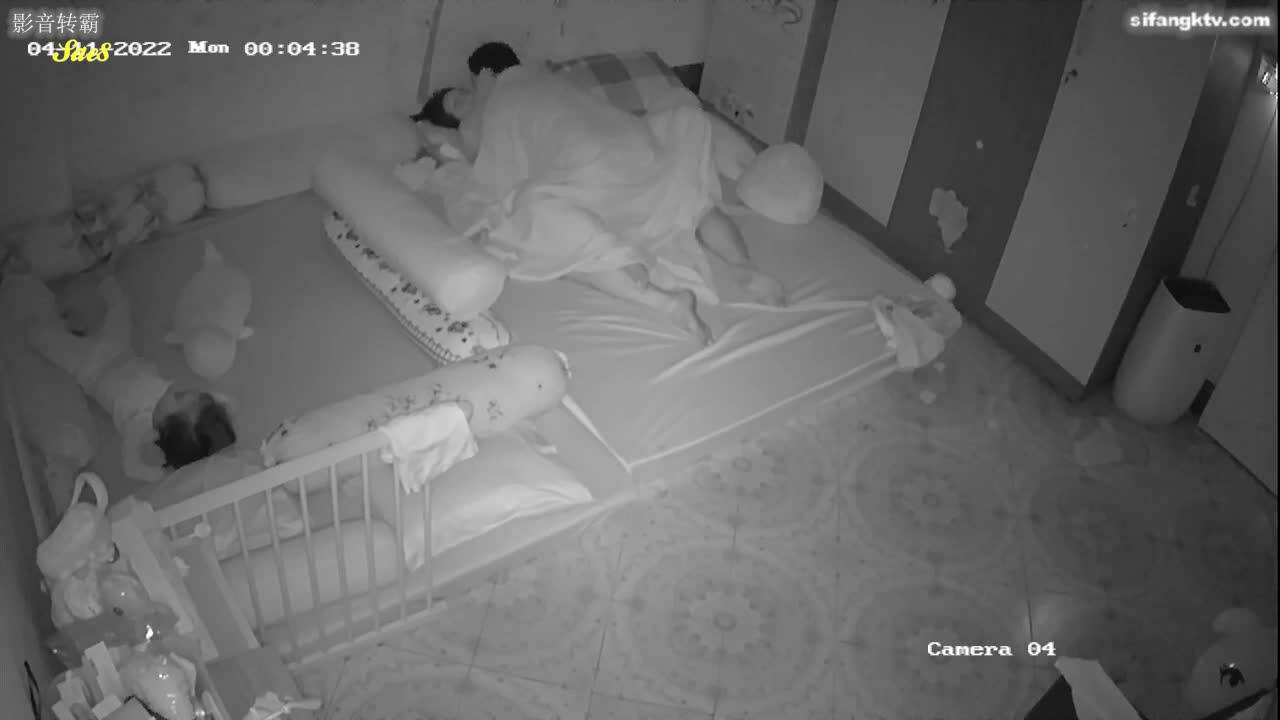 家庭摄像头偷拍夫妻趁着小孩睡觉后赶紧激情做爱。